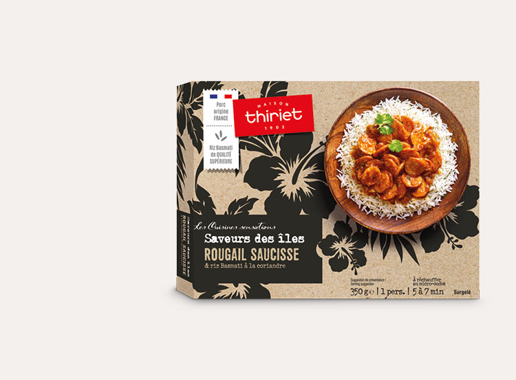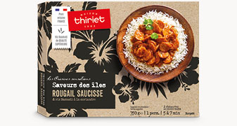 Faites le plein de saveurs des îles avec ces rondelles de saucisse fumée dans une sauce rougail pulpeuse subtilement relevée (concassée de tomates, oignons, gingembre et piment), le tout accompagné d'un riz subtilement parfumé à la coriandre.