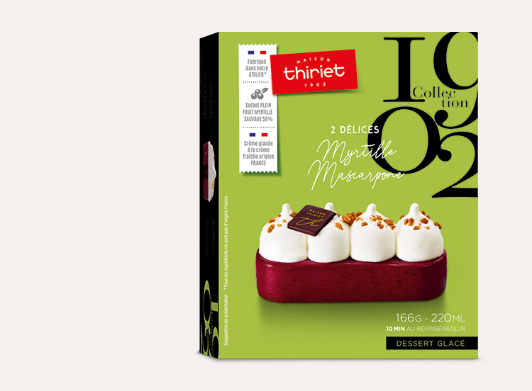 Succombez à la saveur d'un sorbet Plein Fruit myrtille sauvage, allié à une onctueuse crème glacée au mascarpone à la crème fraiche, surligné d'une délicieuse sauce myrtille, de morceaux de spéculoos et d'un sceau au chocolat.*Tous les ingrédients ne sont pas d'origine France