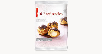 A température ambiante, 15 minutes avant dégustation, placez les Profiteroles sur assiette. Réchauffez le sachet de sauce sous l’eau tiède. Nappez les choux juste avant le service.