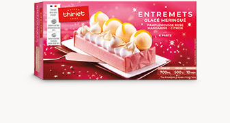 Dégustez cette spécialité glacée fraîche et délicate au sorbet Plein Fruit Pamplemousse rose, sorbet Plein Fruit Mandarine de Sicile et une meringue flambée, recouvrant une sauce intense citron, le tout déposé sur un biscuit façon madeleine-citron. Parfaitement adapté pour une fin de repas !*Tous les ingrédients ne sont pas d'origine France