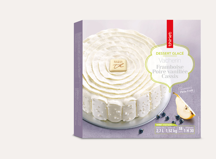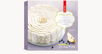 Découvrez l'alliance fruitée de ces trois sorbets Plein Fruit framboise, poire vanillée et cassis, sur une meringue croustillante. Idéal pour les grandes tables, ce vacherin ravira d’abord les yeux avec son décor à la crème fraîche, unique, poché à la main.*Tous les ingrédients ne sont pas d'origine France