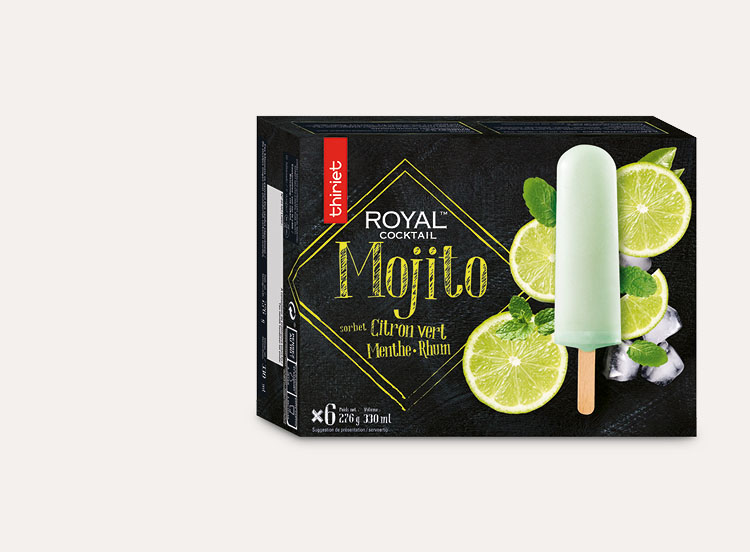 Toute la fraîcheur et le pep's de vos cocktails préférés, en version glacée. Sous la coque de sorbet croquante de ces bâtonnets, retrouvez un sorbet cocktail légèrement alcoolisé pour une pause rafraîchissante. Colorant d'origine naturelle. Ces bâtonnets à la coque de sorbet croquante, allient la fraîcheur piquante du citron vert et de la menthe, au goût si caractéristique du rhum de Martinique, pour un cocktail mojito des plus tendance, en version glacée! Colorant d'origine naturelle.*Tous les ingrédients ne sont pas d'origine France