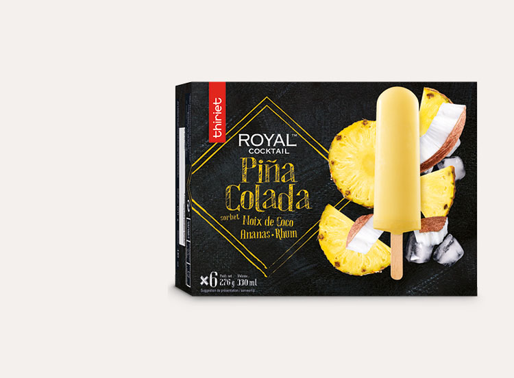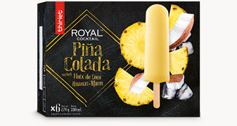 Toute la fraîcheur et le pep's de vos cocktails préférés, en version glacée. Sous la coque de sorbet croquante de ces bâtonnets, retrouvez un sorbet cocktail légèrement alcoolisé pour une pause rafraîchissante. Colorant d'origine naturelle. La coque de sorbet croquante de ces bâtonnets glacés cache un sorbet Piña Colada mêlant les saveurs exotiques de l'ananas et de la noix de coco à l'intensité du rhum blanc. Une touche de fraîcheur dans votre été ! Colorant d'origine naturelle.*Tous les ingrédients ne sont pas d'origine France