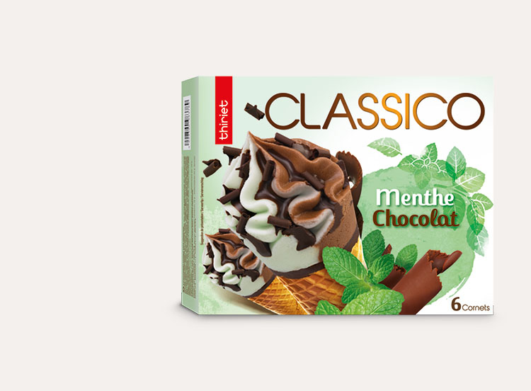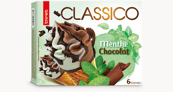 Un cornet à base de 2 crèmes glacées à la crème fraîche, l'une à la menthe et l'autre au chocolat, surmonté d’une gourmandise cacaotée et de copeaux de chocolat, le tout dans une gaufrette croustillante. Sensation assurée à chaque bouchée avec cette alliance menthe chocolat sans colorant ni arôme artificiels, et sa texture onctueuse !*Tous les ingrédients ne sont pas d'origine France