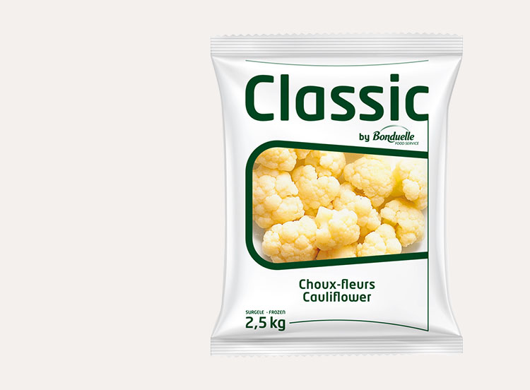 Des choux fleurs en fleurettes surgelés individuellement prêts à cuire, pour vos accompagnements de viande, poisson, œufs, gratin, ou en vinaigrette relevée de fines herbes.