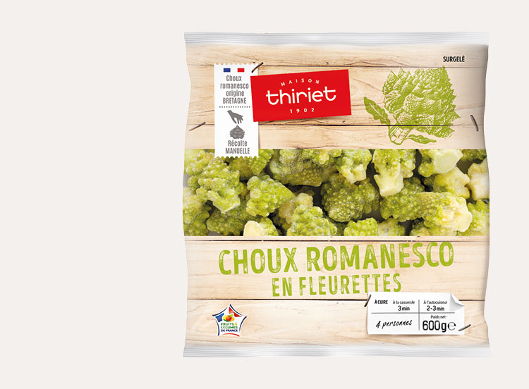 Avec leurs formes originales, ces fleurettes de choux romanesco cultivés en Bretagne et récoltés à la main mettront de la gaieté dans vos assiettes.