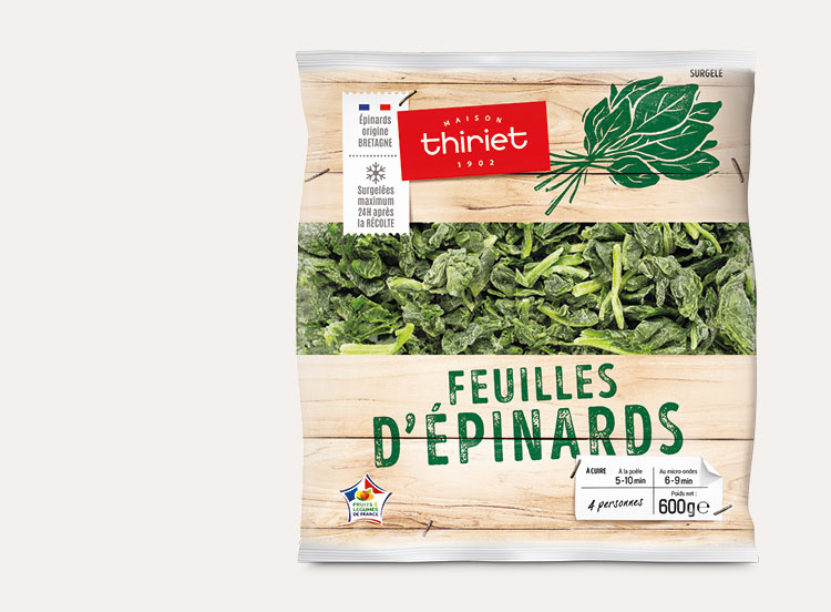Versez la quantité souhaitée de feuilles d'épinards encore surgelées dans une poêle et ajouter le volume d'eau préconisé ci-dessous. Couvrez et laissez cuire à feu moyen pendant le temps indiqué ci-dessous, en remuant de temps en temps :