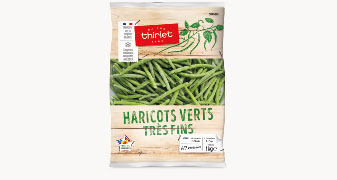 Des haricots verts très fins cultivés en France et surgelés individuellement qui se dégustent froids en salade ou chauds, en accompagnement de viande, poisson ou tomates à la provençale. Très pratiques, il suffit de les cuire quelques minutes à l'autocuiseur.