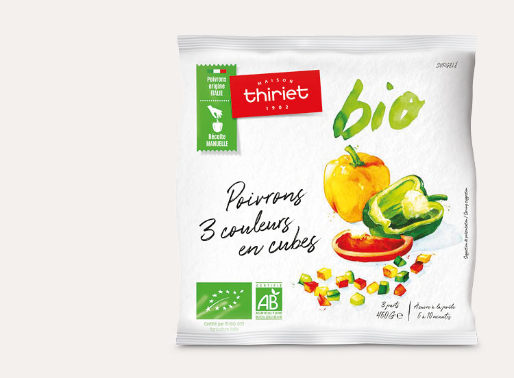 Déjà coupés en petits cubes, ce mélange de poivrons rouges, verts et jaunes égayera vos préparations culinaires. Des légumes cultivés en Italie issus de l'agriculture biologique qui évite l'usage de produits chimiques et contribue au respect de l'environnement.