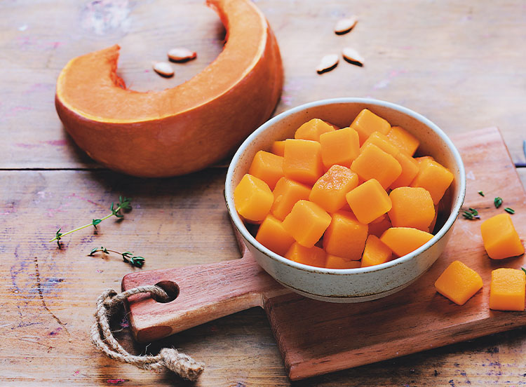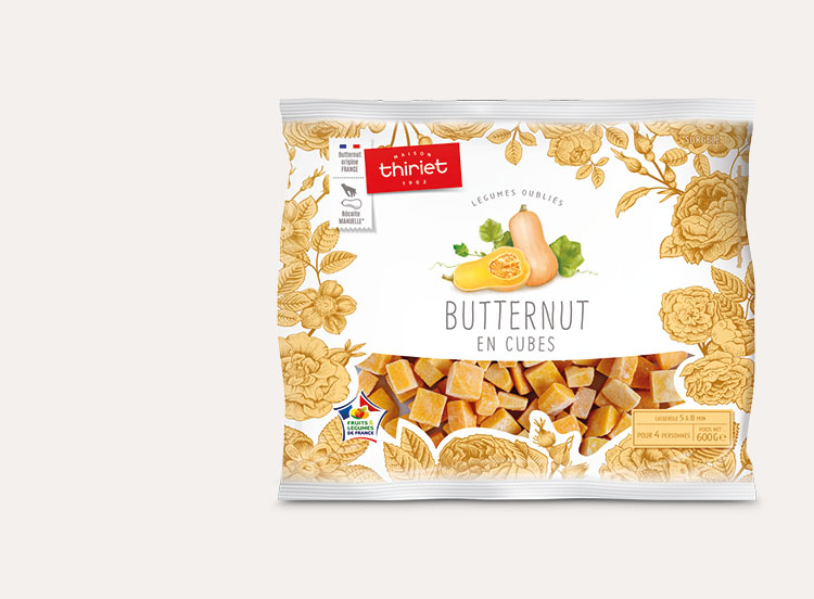 Versez la quantité souhaitée de butternut encore surgelée dans un plat adapté. Recouvrez-le d’un film alimentaire et faites cuire au micro-ondes à 900W pendant les temps indiqués ci-dessous :