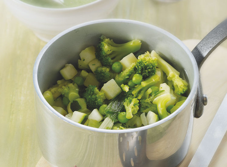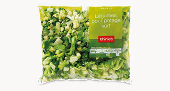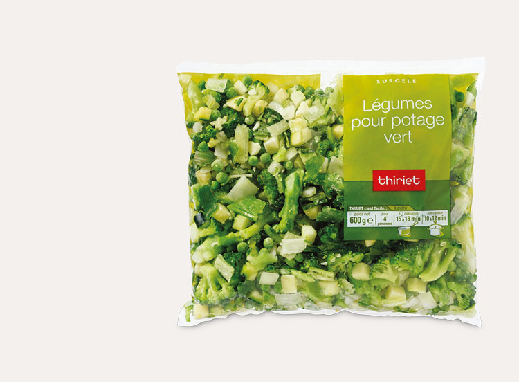 Un mélange de légumes, prêt à cuire, puis à transformer afin d'obtenir un potage coloré : brocolis, petits pois, courgettes, poireaux, pommes de terre et oignons