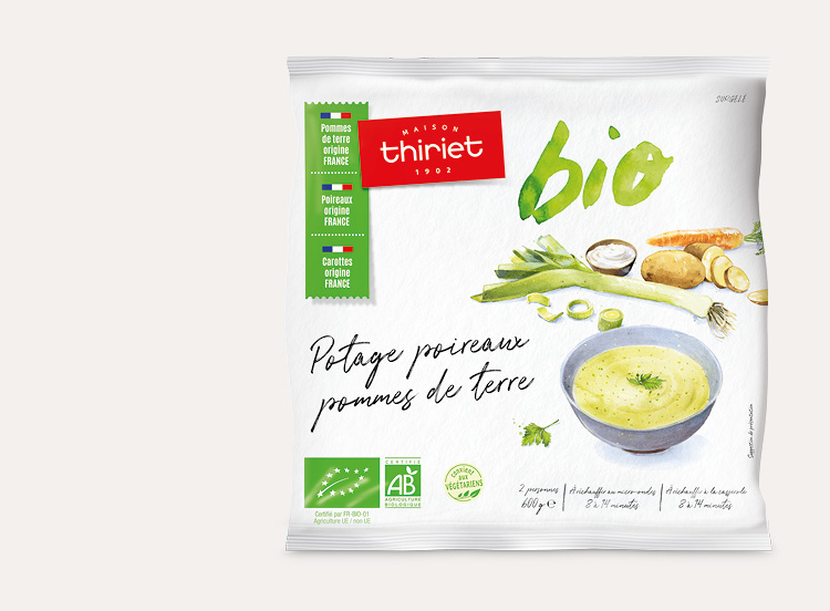 Versez la quantité souhaitée de potage encore surgelé dans un plat adapté. Pour la moitié du sachet, faites réchauffer au micro-ondes à 750W pendant 7 minutes, avant de remuer puis de continuer le réchauffage pendant 1 minute. Pour le sachet complet, faites réchauffer au micro-ondes à 750W pendant 12 minutes, avant de remuer puis de continuer le réchauffage pendant 2 minutes. Remuez avant dégustation.