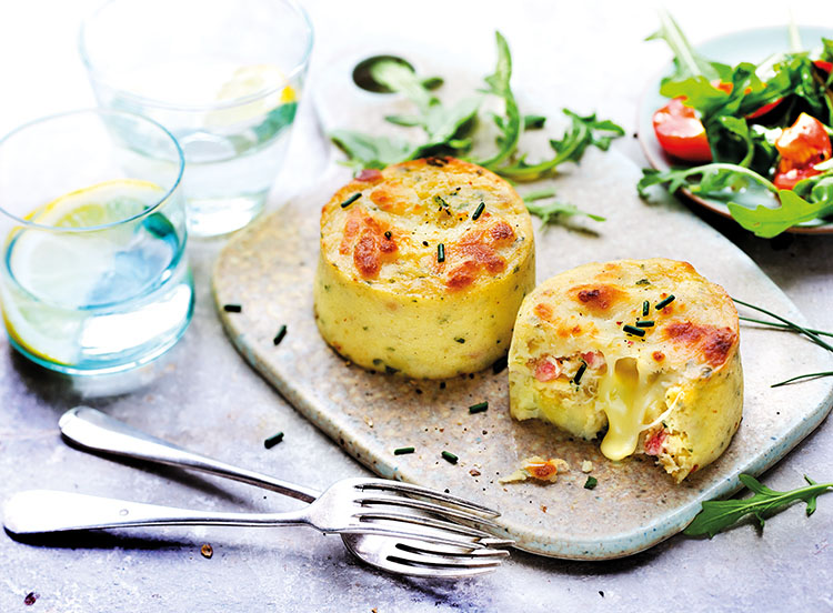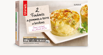 Appréciez la version salée de ce coeur coulant : pommes de terre écrasées, relevées de lardons fumés au bois de hêtre et cuisinées à la crème et coeur au Mont d'Or AOP*. Hummm, les amateurs de fromages ne vont pas être déçus !*Appellation d'Origine Protégée