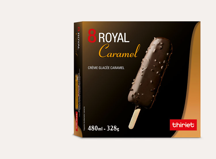 Des bâtonnets de glace caramel et enrobage au cacao avec morceaux de noisettes.*Tous les ingrédients ne sont pas d'origine France