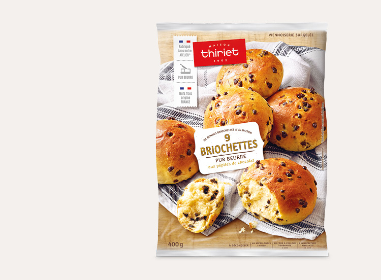9 briochettes pur beurre aux pépites de chocolat, avec 10% de pépites de chocolat et aux oeufs frais.*Tous les ingrédients ne sont pas d'origine France