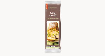Préchauffez le four à 160°C (Th 5/6). Réchauffez le cake encore surgelé, hors de son emballage, pendant 30 minutes. Laissez reposer 5 minutes et découpez avec un grand couteau scie.