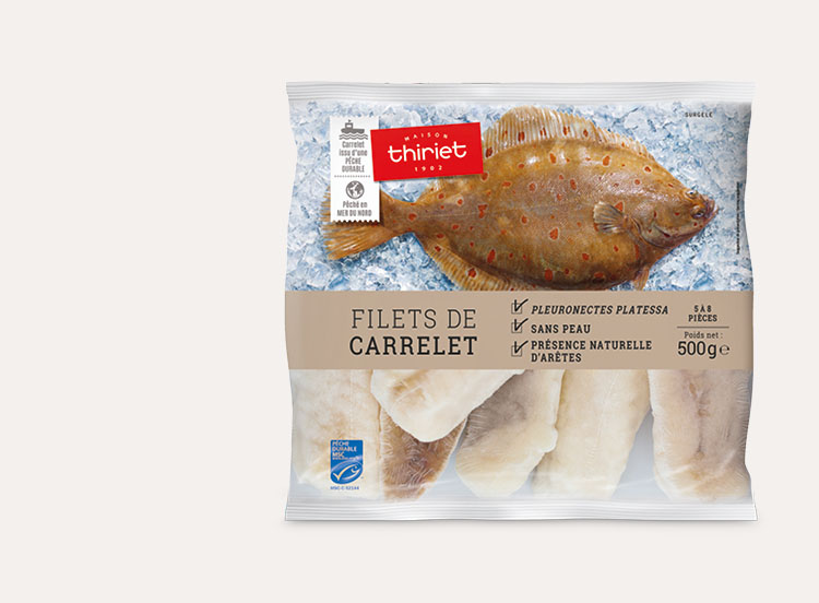 Ces filets des carrelets pêché en Mer du Nord, se préparent en un tour de main. Ce produit provient d’une pêcherie qui a répondu à un référentiel environnemental pour une pêche durable et bien gérée.
