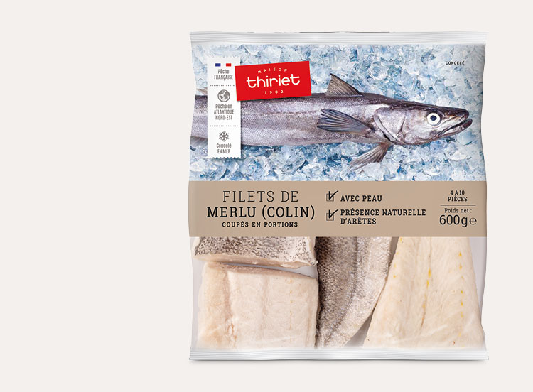 Ces filets de merlu (colin), issus de la pêche française, se cuisinent en un tour de main pour satisfaire petits et grands par leur chair blanche, fine et fondante. Un filet de sauce beurre blanc et une timbale de riz : le repas est prêt.