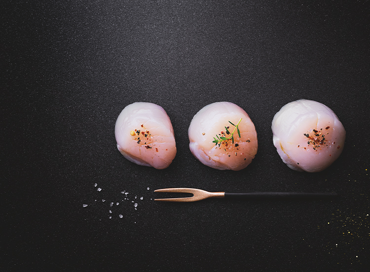 De qualité incontestable, ces noix de Saint-Jacques* sauvages d'origine France sont pêchées artisanalement en baie de Normandie. Parées et décoraillées à la main, elles seront très appréciées des fins gourmets.