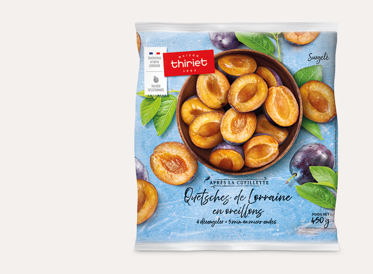 Des quetsches* de Lorraine en oreillons, surgelées individuellement, à utiliser selon vos envies.