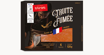 Idéales en entrée ou à l'apéritif, ces 4 tranches de truite origine France, riche en oméga 3, délicatement fumée au bois de hêtre et salée au sel sec possèdent une texture moelleuse et goûteuse.*PAT : Protéines d'Animaux Terrestres. Thiriet a fait le choix de ne pas utiliser de farine d'animaux terrestres dans l'alimentation de ces truites. Ces truites sont également nourries sans OGM (Organismes Génétiquement Modifiés) <0,9%