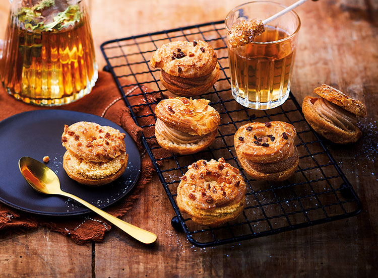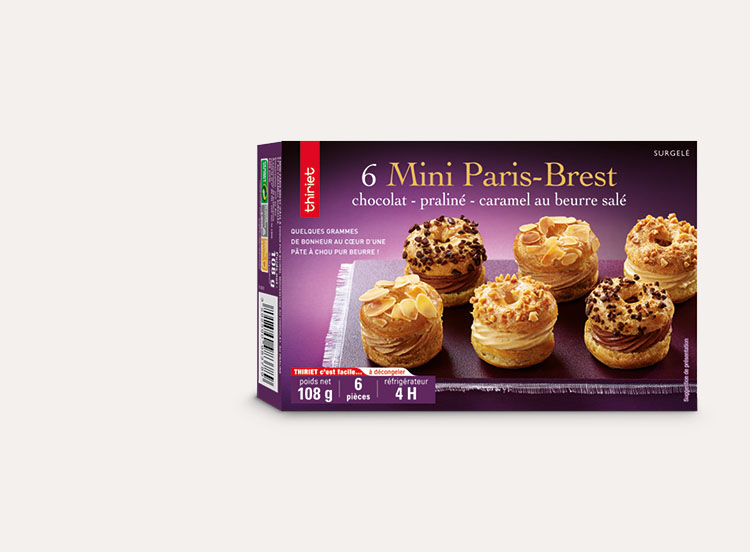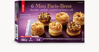 Ces mini Paris-Brest réinventent votre plaisir avec leurs 3 saveurs gourmandes au cœur d'une mini couronne de pâte à choux pur beurre : mousseline au chocolat et cœur de ganache au chocolat noir pour une, mousseline au praliné et cœur au praliné pour l'autre, mousseline à la crème de caramel au beurre salé et cœur à la confiture de lait pour la troisième. Un classique miniaturisé !