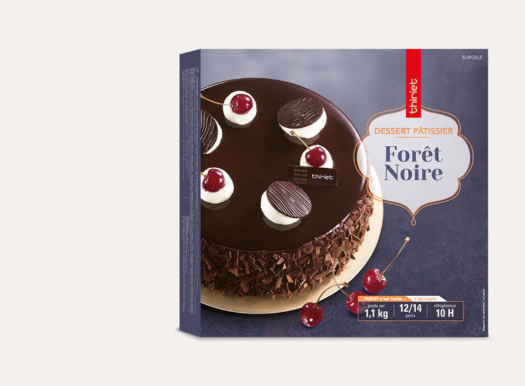 Sortez la Forêt Noire de sa boîte. Laissez-la décongeler, sous son dôme plastique, pendant 10 heures au réfrigérateur.