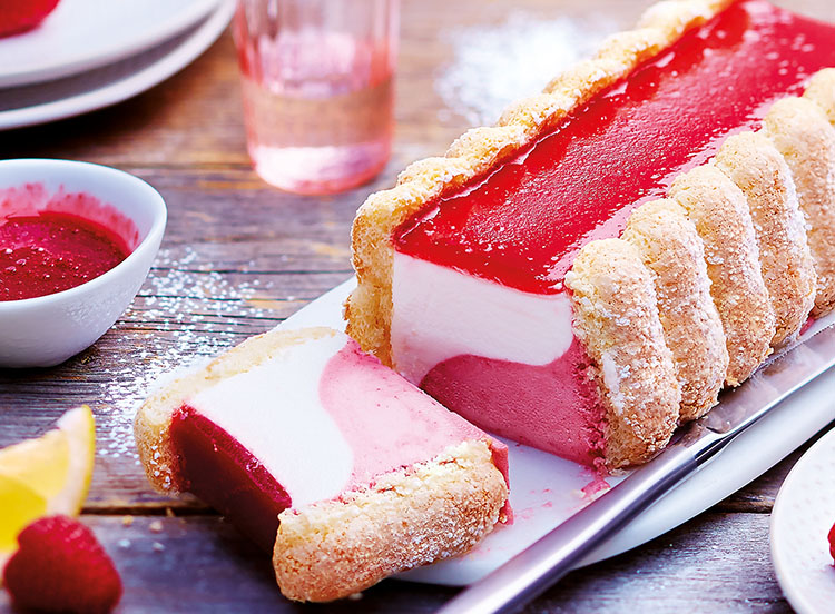 Une savoureuse charlotte composée de deux mousses : une mousse framboise et une mousse citron, chemisée de biscuits cuillère, et recouverte d'un nappage framboise.*Tous les ingrédients ne sont pas d'origine France