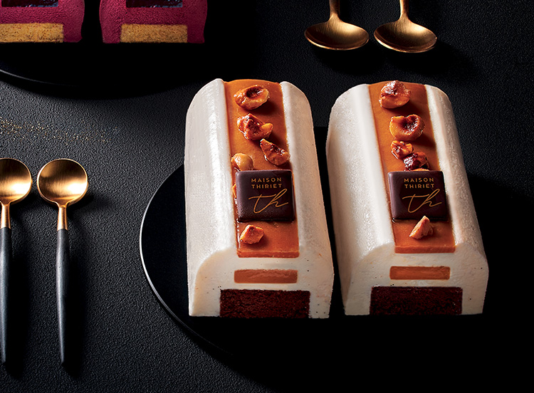 Un biscuit madeleine cacao avec éclats de noisettes caramélisées, une mousse à la vanille Bourbon, un crémeux caramel au beurre salé, une pâtisserie tout en gourmandise qui a tout pour plaire !*Tous les ingrédients ne sont pas d'origine France