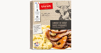 Les amateurs de langue de bœuf vont se régaler avec ce plat composé de fines tranches de langue de bœuf certifiée Viande Bovine Française, nappées d'une onctueuse sauce piquante avec cornichons et câpres. Une savoureuse purée de pommes de terre cuisinée au beurre et à la crème apporte une touche de douceur.