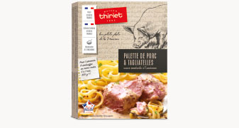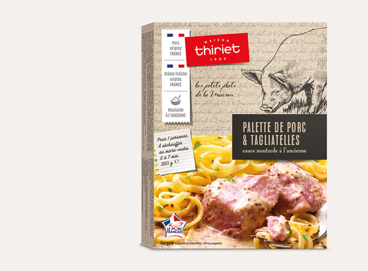 Avec ses tagliatelles aux œufs frais cuites al dente agrémentées de quelques bâtonnets de carottes, sa palette de porc (origine France) fondante recouverte d'une sauce à la crème fraîche (origine France) et à la moutarde à l’ancienne, ce petit plat, prêt en quelques minutes, vous mettra les papilles en éveil. Tout le plaisir de la cuisine de brasserie chez vous !
