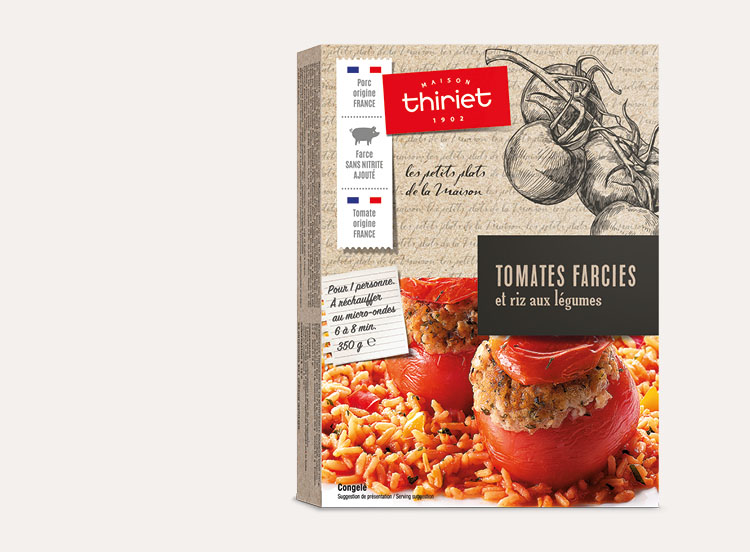 Sous le chapeau de ces deux délicieuses tomates origine France se cache une généreuse farce à la viande de porc origine France (sans nitrite ajouté), relevée d’oignons et de persil. Accompagné de son riz aux légumes, ce classique de la cuisine familiale est idéal pour un déjeuner gourmand.