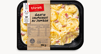 Une recette simple qui plaira à tous : des pommes de terre fondantes (origine France), du jambon cuit supérieur (origine France) sans nitrite ajouté, une sauce à la crème fraîche et une touche d’emmental. Ce plat se réchauffe en quelques minutes au micro-ondes dans sa barquette.