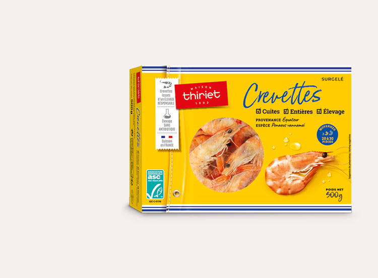 Élevées en Equateur sans antibiotique. Ce produit provient d’une ferme aquacole qui a répondu à un référentiel pour une aquaculture responsable. Cuites en France, vous pouvez les utiliser à votre guise dans de nombreuses recettes, en plat chaud ou froid.