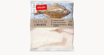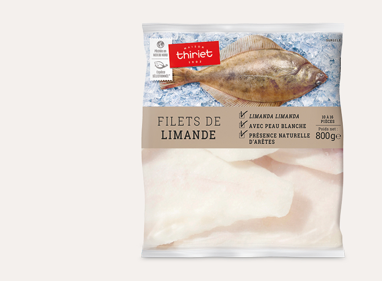 Avec leur chair fine, ces filets de limande, pêchés en mer du Nord, ne pourront que combler petits et grands. La limande est un poisson plat asymétrique : les filets issus de la face dorsale sont sans peau, alors que ceux issus de la face ventrale présentent une fine peau blanche qui peut être consommée.Présence naturelle d'arêtes.*Chez Thiriet, nous avons sélectionné l'espèce de Limande limanda limanda pour ses qualités gustatives supérieures.