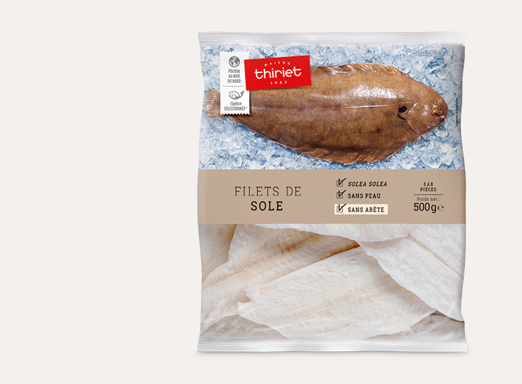 Avec cet hôte de la mer du Nord réputé pour le moelleux de sa chair et son goût raffiné, la dégustation se fera plaisir. Ces filets de sole sans peau et sans arête trouveront leurs lettres de noblesse accompagnés d’une délicieuse purée de légumes.*Chez Thiriet, nous avons sélectionné l'espèce de Sole Solea solea pour ses qualités gustatives supérieures.