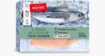 Pêché en Polynésie française, nous avons fait le choix pour ce thon germon d'une pêche à la ligne et hameçons. Cette technique sélective préserve la qualité du poisson et est respectueuse de l'environnement. Ce thon germon est surgelé en mer et les cœurs sont découpés dans partie la plus charnue et moelleuse du poisson, puis emballés individuellement sous vide pour préserver leur fraîcheur et leurs qualités organoleptiques. Ils se prêteront à de multiples préparations : mi cuits à la poêle pour apprécier leur chair dense, ou bien grillés au barbecue arrosés d’un filet de citron, laissez parler vos envies au gré des saisons.