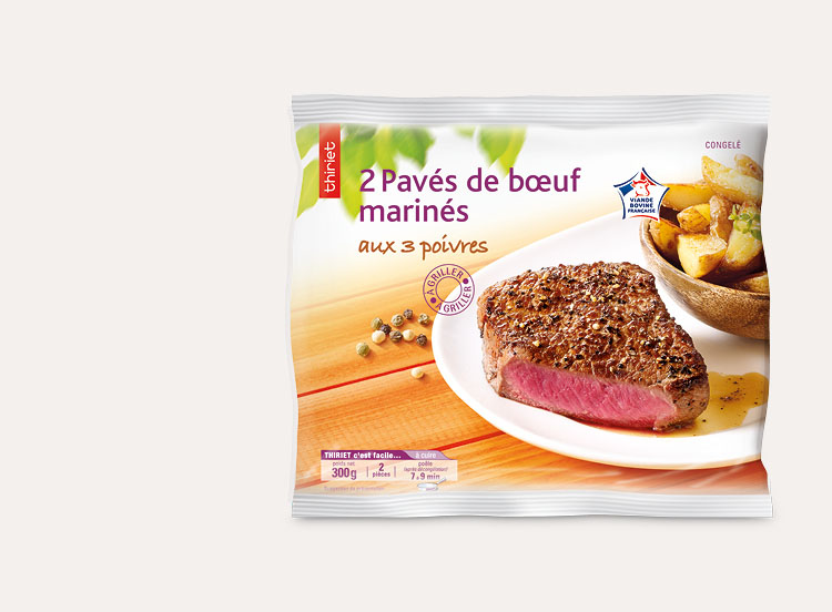 Thiriet a fait le choix pour ce pavé de bœuf aux poivres d'une maturation à 10 jours qui permet d'assurer à la viande toute sa tendreté et une qualité gustative unique.