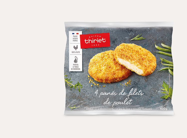 Préchauffez votre four à 200°C (Th 6/7). Déposez-les panés de poulet encore surgelés, sur une plaque recouverte de papier cuisson. Faites réchauffer à mi-hauteur pendant 18 à 20 minutes (20 à 22 minutes dans un four traditionnel).