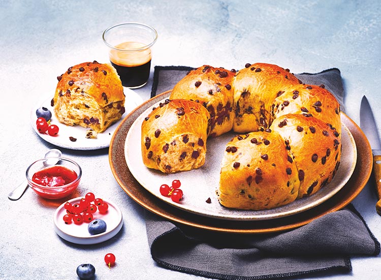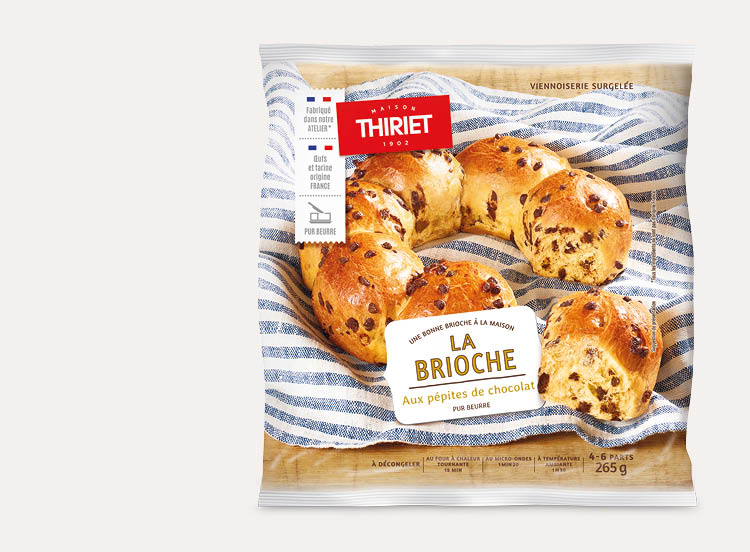 Dénomination de vente : Produit surgelé. Brioche pur beurre aux pépites de chocolat