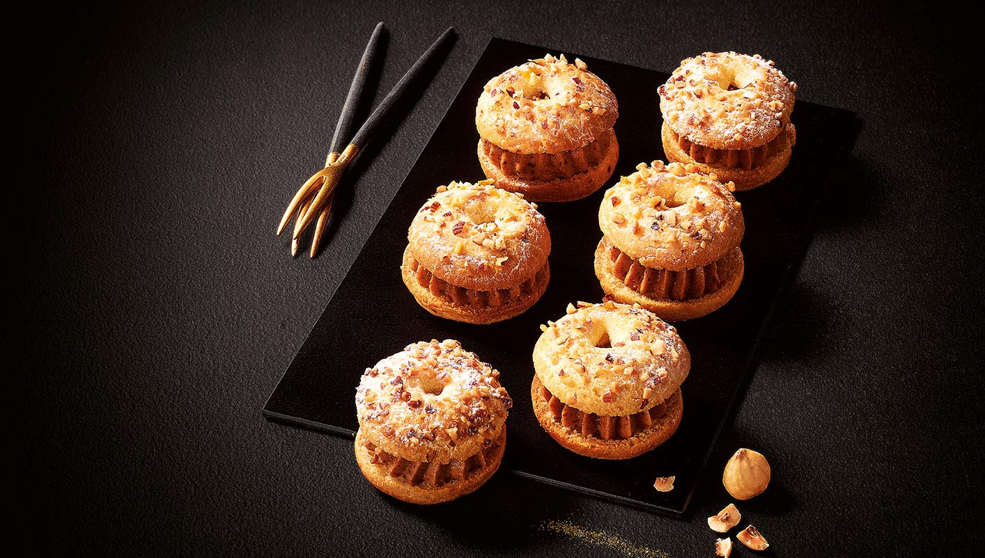 Des Paris-Brest en format mini: une couronne de pâte à choux pur beurre garnie d'une délicieuse crème mousseline au praliné noisettes et amandes. Un régal à partager !
