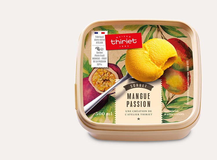 Un savoureux sorbet Plein Fruit 50% mangue passion avec morceaux. Découvrez notre assortiment de sorbets Plein Fruit aux saveurs naturellement fruitées et aux notes originales ainsi que nos crèmes glacées aux parfums étonnants et gourmands au sein de notre gamme de bacs Premium !*Tous les ingrédients ne sont pas d'origine France