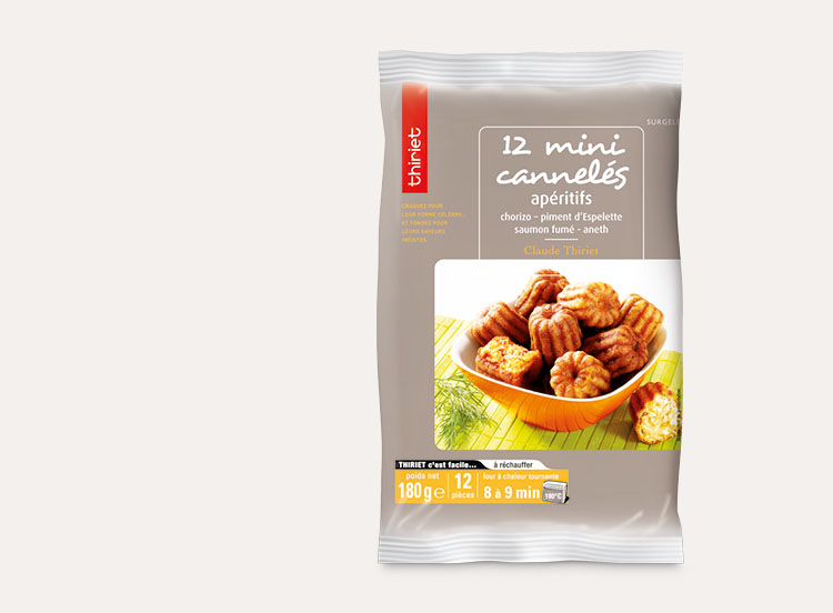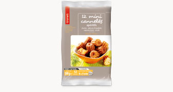 Préchauffez votre four à 180°C (Th. 6). Déposez les mini cannelés encore surgelés, hors de leur barquette, sur la plaque du four recouverte de papier cuisson. Laissez réchauffer 8 à 9 minutes (9 à 10 minutes pour un four traditionnel). Laissez ensuite reposer environ 5 minutes hors du four avant de déguster.